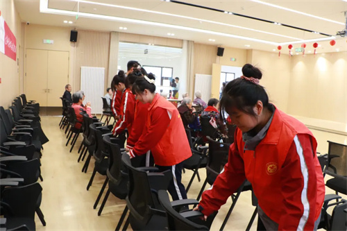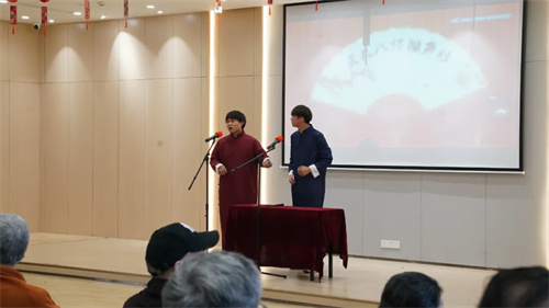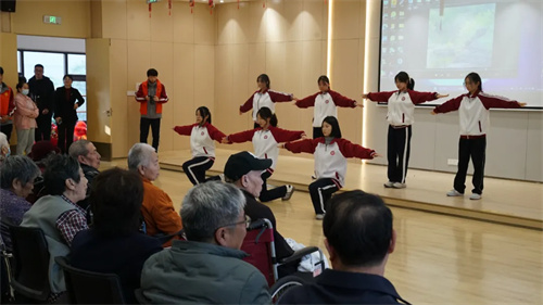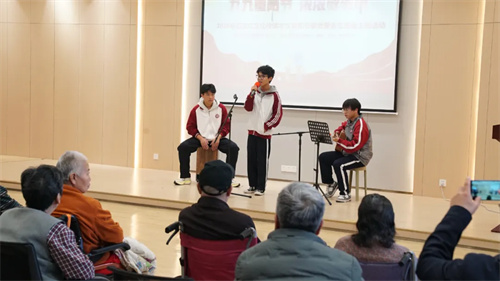 当天下午,由学校领导带队,党员教师、团员师生代表共30余人前往乐仁恒颐康养护理中心开展慰问活动。学生社团充分发挥专业特长,带来了舞狮、相声、歌舞等精彩节目,并送上亲手制作的手工作品,现场暖意融融。